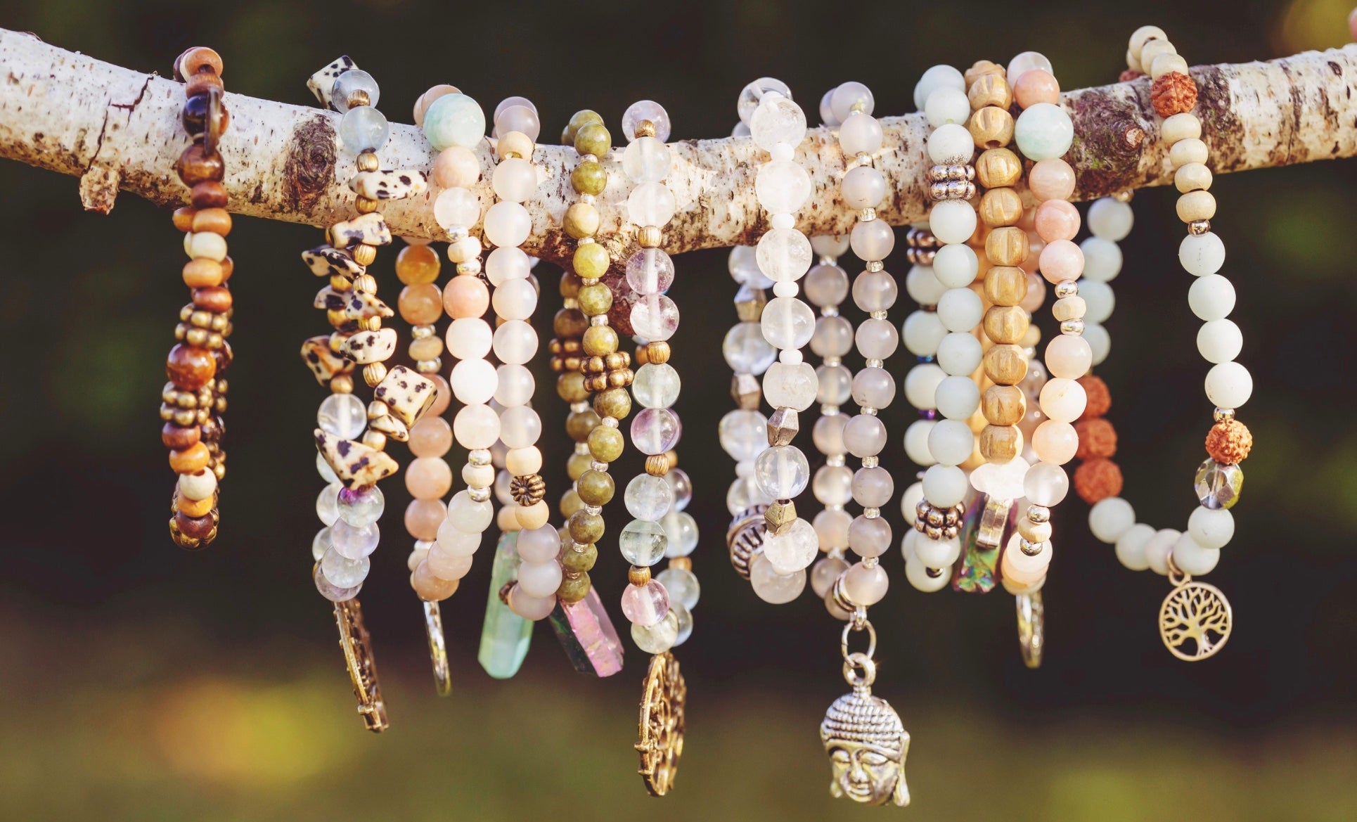 We use 100% natural semi-precious stones with a variety of pendant materials such as 925 sterling silver, copper and stainless steel. The decorative gold pendants are 18k gold rhodium plated. Some of our produc lines are used crystal glass beads that brings you to a classy jewelry as well.