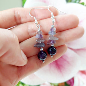 Amethyst Semi Precious Stone with S925 Silver Ear Hooks Drop Earrings Handmade
