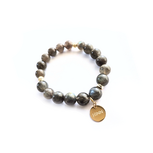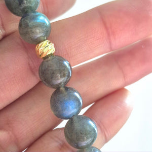 Labradorite Bracelet with Decorative 18K Gold Charms, Semiprecious Stone Jewelry