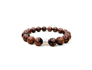 Mahogany Obsidian Bracelet with Decorative Stainless Steel Charms Silver Charm, Semiprecious Stone Jewelry