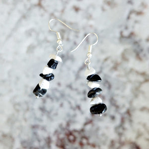 Onyx and Howlite Semi Precious Stone with 925 Sterling Silver Ear Hooks Drop Earrings Handmade