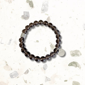 Smoky Quartz Bracelet with Decorative Silver Charm, Semiprecious Stone Jewelry