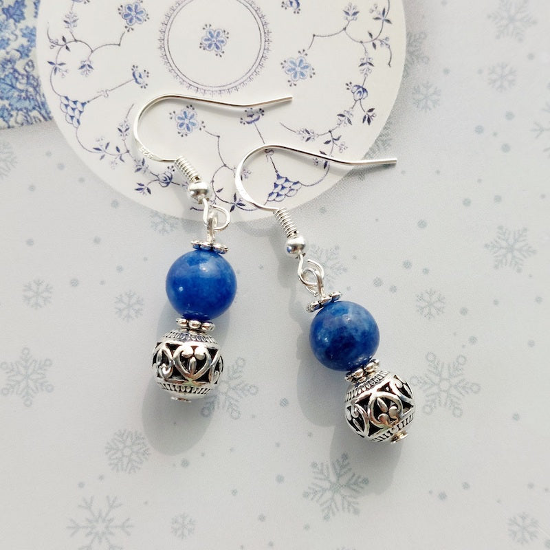 Materials: These gorgeous handmade earrings are made of natural blue Kyanite rounded beads with beautiful silver charm and 925 sterling silver ear hooks.