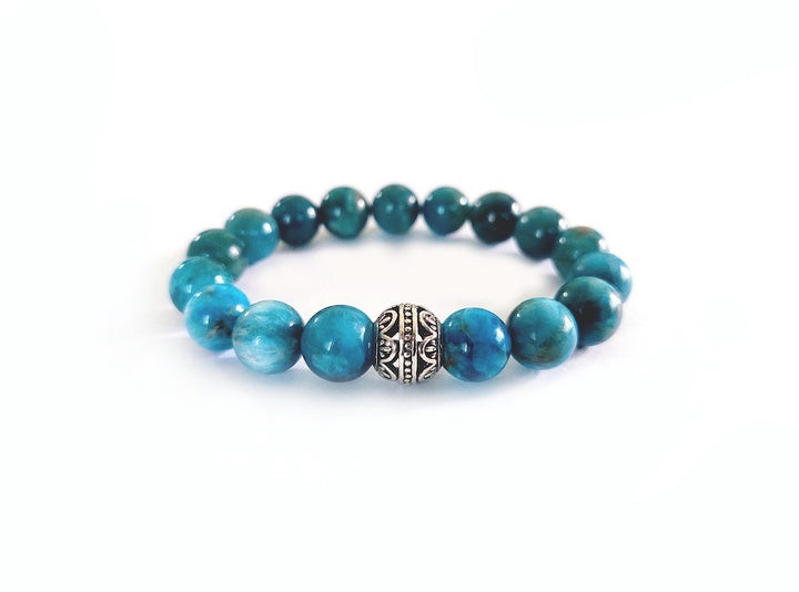 Apatite Bracelet with Decorative Floral Silver Charm, Semiprecious Stone Bracelet