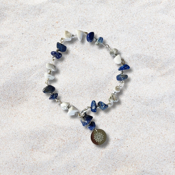Sodalite and Howlite Stone Bracelet with Decorative Silver Charm, Semiprecious Stone Jewelry