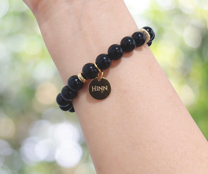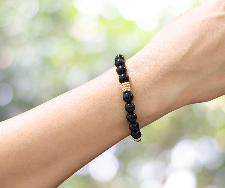 Obsidian Bracelet with Decorative 18K Gold Charm Semiprecious Stone Jewelry
