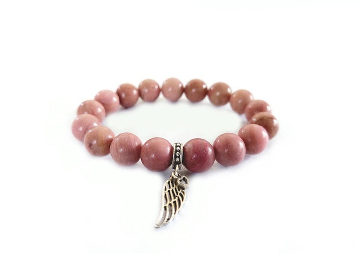 Rhodonite Bracelet with Decorative Silver Wing Charm Jewelry