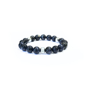 Deep Blue Tiger's eye Bracelet with Decorative Silver Charms, Semiprecious Stone Jewelry